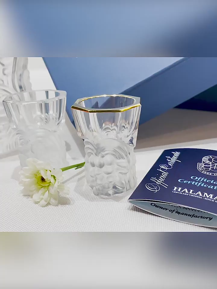 Bohemia Gold Enamel Whisky Glasses Decanter Gift Set
