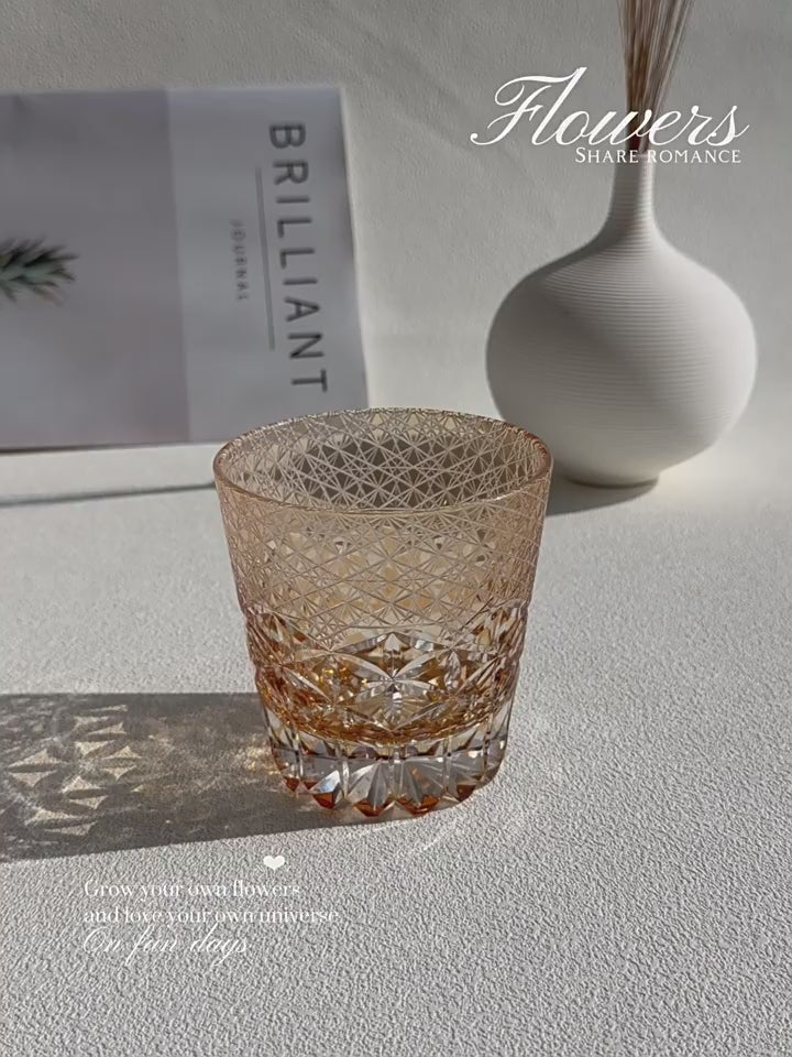 K9 Crystal Japanese Edo Kiriko Whiskey Glass - Diamond-like - Amber