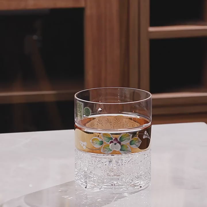 Crafted using traditional hand-engraving and gold-painting techniques, each stroke highlights the rich texture of enamel blossoms and the refined shimmer of gold. The rounded, gold-lined mouth ensures a smooth tasting experience, while the solid crystal base offers both visual brilliance and stable placement. This glass is not only a vessel for fine whisky but also a piece of decorative art that carries the heritage of hand-painted luxury into modern spaces.