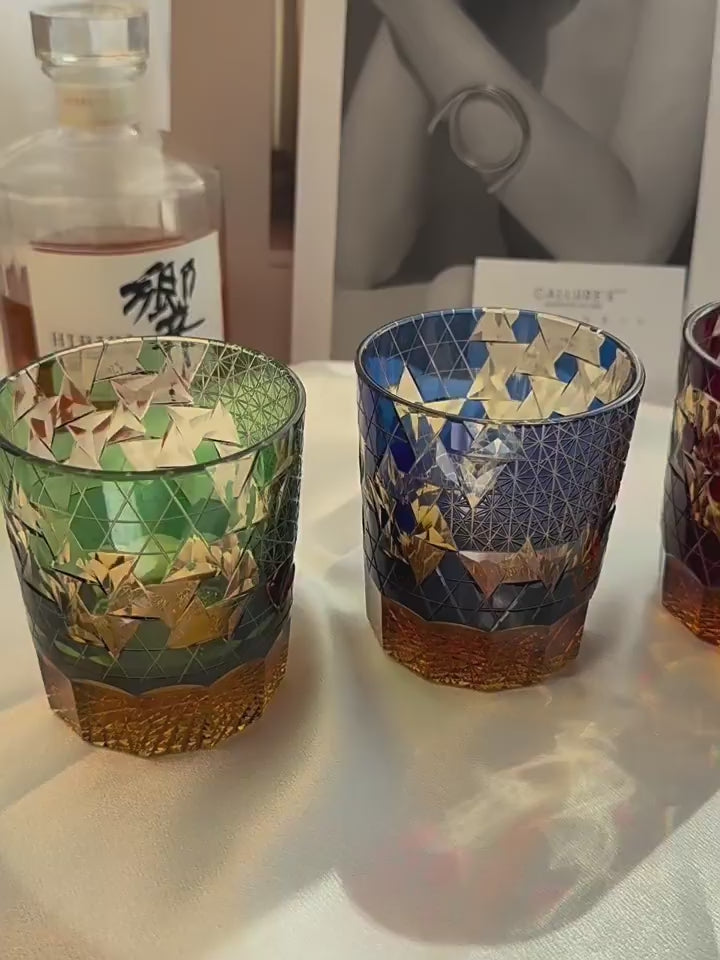 Edo Kiriko Handcrafted Hexagonal Exquisite Whiskey Glass - Red GoGlassCup