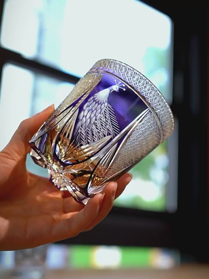 Edo Kiriko Handcrafted Violet Peacock Whisky Glass - Crystal Glass Sale price$155.00 Regular price$190.00