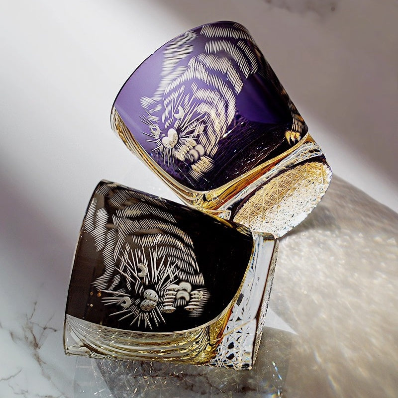 This Edo Kiriko handcrafted crystal glass with its exquisite cut design is a masterpiece that brings the majestic and dynamic essence of the tiger to life. Every detail of the intricate tiger stripes is a testament to centuries-old craftsmanship, showcasing the skill and dedication of its artisan creator. As light dances through the crystal, it casts sparkling reflections that enhance the natural elegance of the glass, while the hand-cut design adds a unique artistic flair. Holding this glass feels like holding more than just a piece of drinkware—it's embracing a slice of history and a remarkable example of craftsmanship. This harmonious blend of functionality and art elegantly captures the spirit and allure of Eastern artistry. 🍷✨