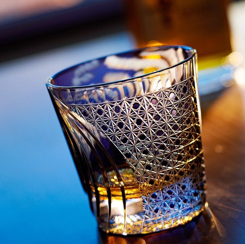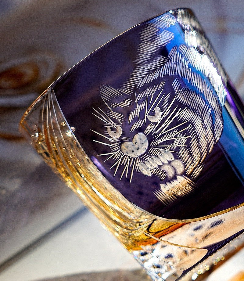 Edo Kiriko Handcrafted Kuro Tora Whisky Glass With Wooden Box