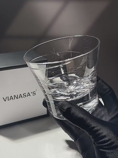 Inspired by the paths of celestial bodies across the night sky, this glass is crafted with precision-cut trails that mimic the orbit of stars. Each angle captures and refracts light like distant starlight, guiding the eye along a journey from rim to base.
